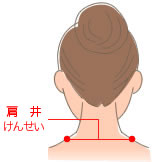 肩井は肩こりの特効ツボ。肩がこったとき無意識にもみほぐしている人も多いと思います。もちろん、押しもむだけでも効果はありますが、肩回しと合わせるといっそう効果的です。