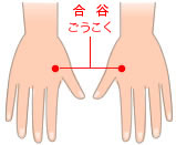 自分でできる押し方 親指を「合谷」にあて、気持ちいいと感じる強さで押しもみします。両手それぞれ2〜3分間ずつ「押してはゆるめる」を繰り返します。
