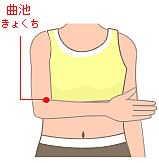 ひじを曲げたときにできる横ジワの先端部のくぼみ、親指側にあります。