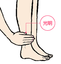 両足の外くるぶしから指5本分上あたりの筋の間にあります。親指で押さえてみると痛さを感じます。ひどく痛い人は目が疲れている現れです。