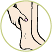 指をツボにあて、残りの4本の指で足をかかえるようにして押し揉みます。1〜2分行ないます。眠る時に、反対側の足のかかとでグイグイと押したり緩めたりしても効果的です。