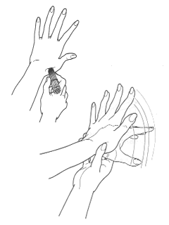 陽谿、陽池のいずれのツボも親指で押し揉みましょう。ツボに米粒を貼って、時々その上から押し揉むようにすると、より一層効果的です。